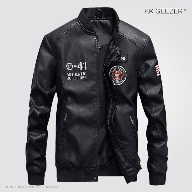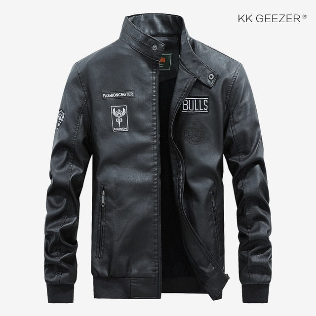 Leather Jacket Men Bomber Baseball Jacket Biker Pu Coat Faux Pilot Varsity Fleece College Top Leather Black Slim Fit Motorcycle