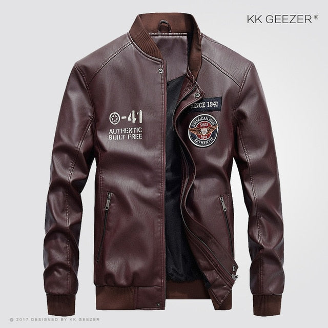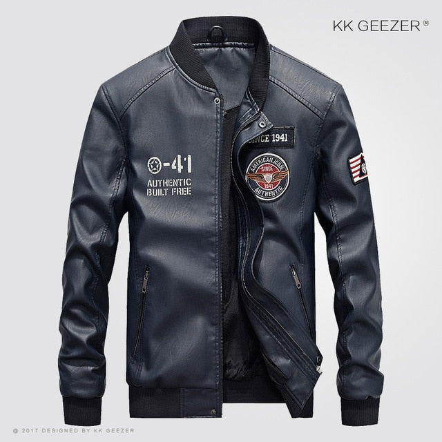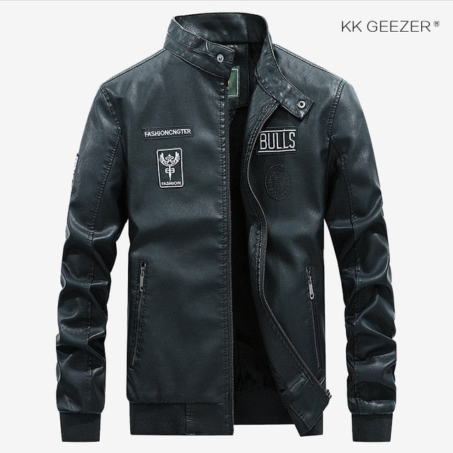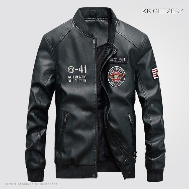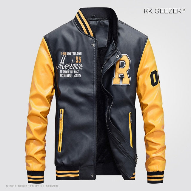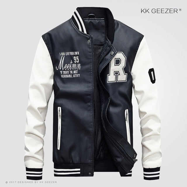 Leather Jacket Men Bomber Baseball Jacket Biker Pu Coat Faux Pilot  Varsity Fleece College Top Leather Black Slim Fit Motorcycle