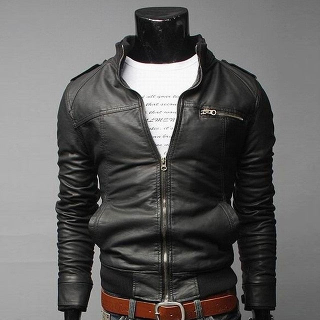 New Fashion Autumn Men’s Leather Jacket Black Brown Mens Stand Collar Coats Leather Biker Jackets Motorcycle Leather Jacket